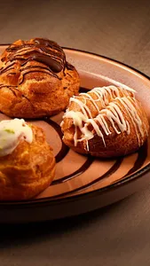 Galleta rellena de crema de nucita, combinada entre galleta de vainilla con chips de chocolate semiamargos y galleta de chocolate con polvo de nucita, trozos de galleta nucita y chips de chocolate blanco.